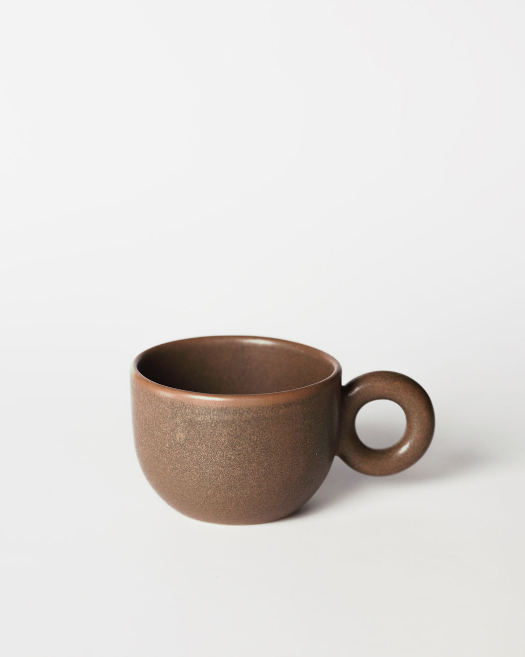 Baby xícara em cerâmica de alta temperatura. Esmalte marrom acetinado ✧ um luxo ✧.