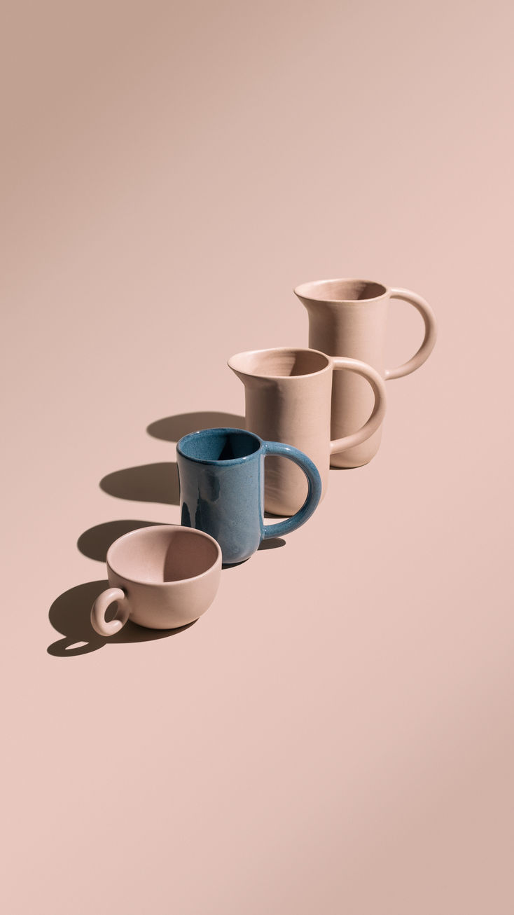 Xícara em cerâmica de alta temperatura. Esmalte blush-rosadinho acetinado.